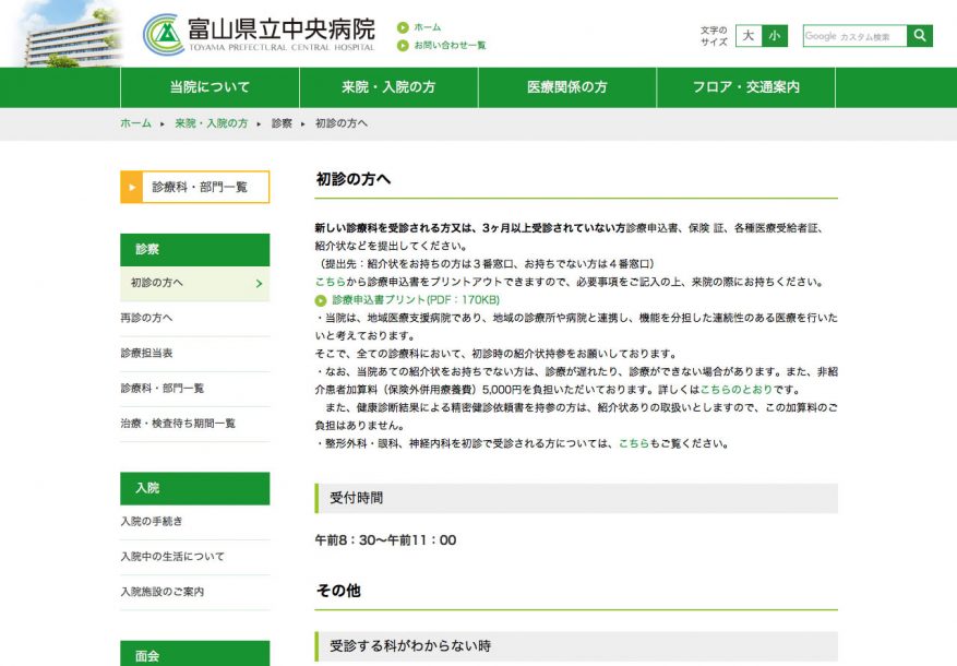 富山県立中央病院 WEBサイト